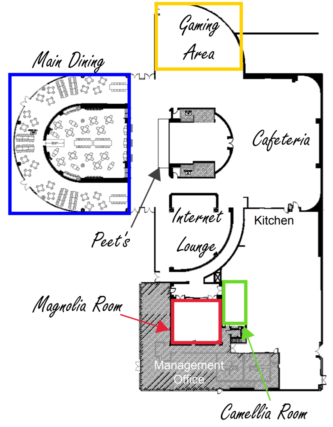 Cafe @ The Commons is also available for a full buyout. Buyout includes exclusive use of the Internet Lounge, Gaming Area, and Main Dining spaces.